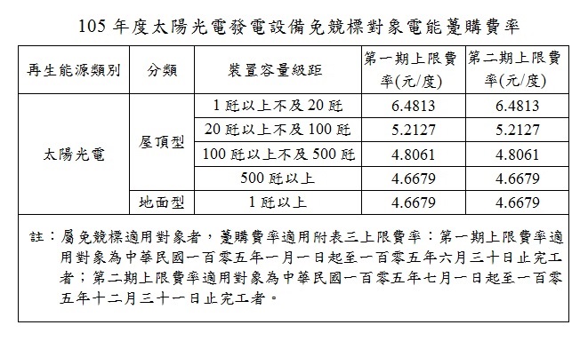 另外,系統維護費用,業者每年約提列整體裝置發電量1%支應。
